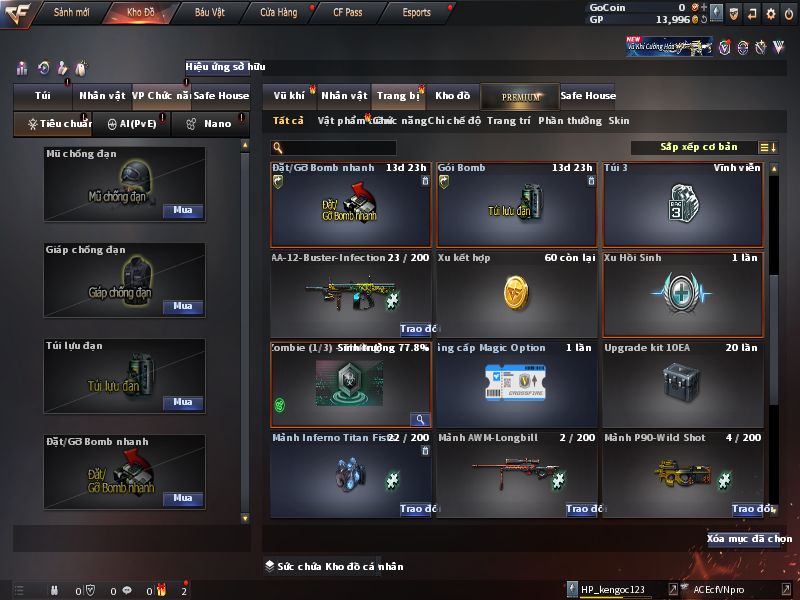 Acc CF #9013 - TANG 1V+ ACC GO TRANG THONG TIN