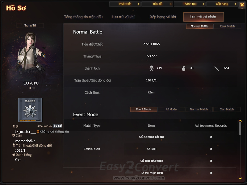 Acc CF #9052 - CỰU BINH + ACC TRẮNG TT
