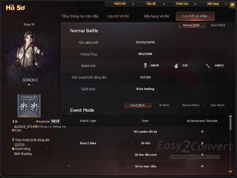 Acc CF #8501 - ACC GO TRANG THONG TIN