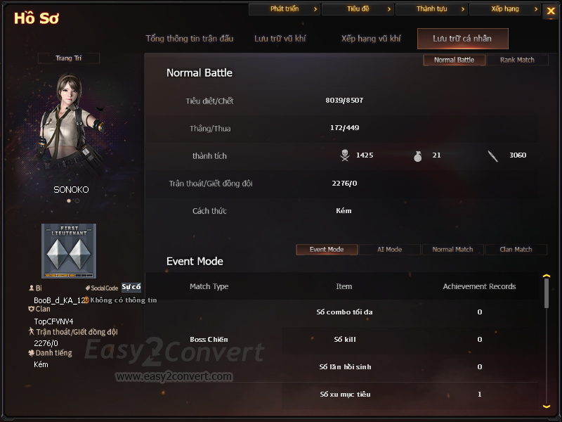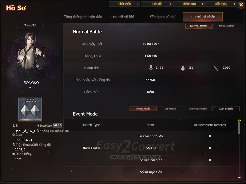 Acc CF #9050 - CỰU BINH+ ACC TRẮNG TT