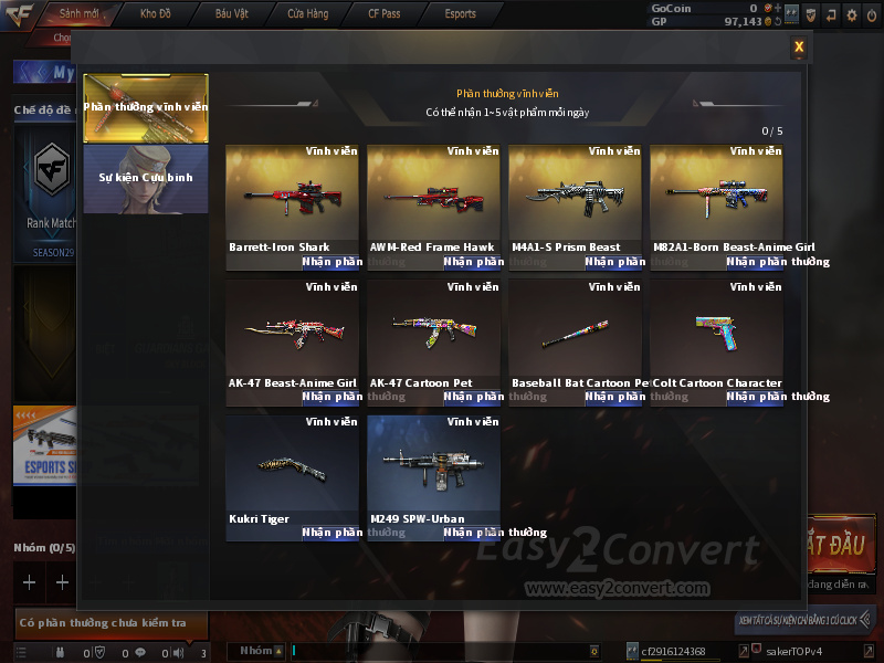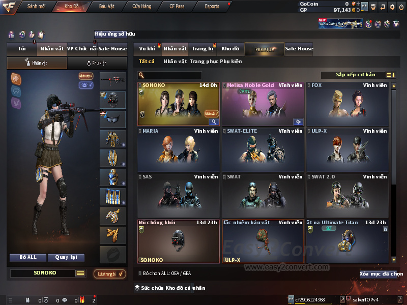 Acc CF #8601 - TANG 1V+ ACC GO TRANG THONG TIN